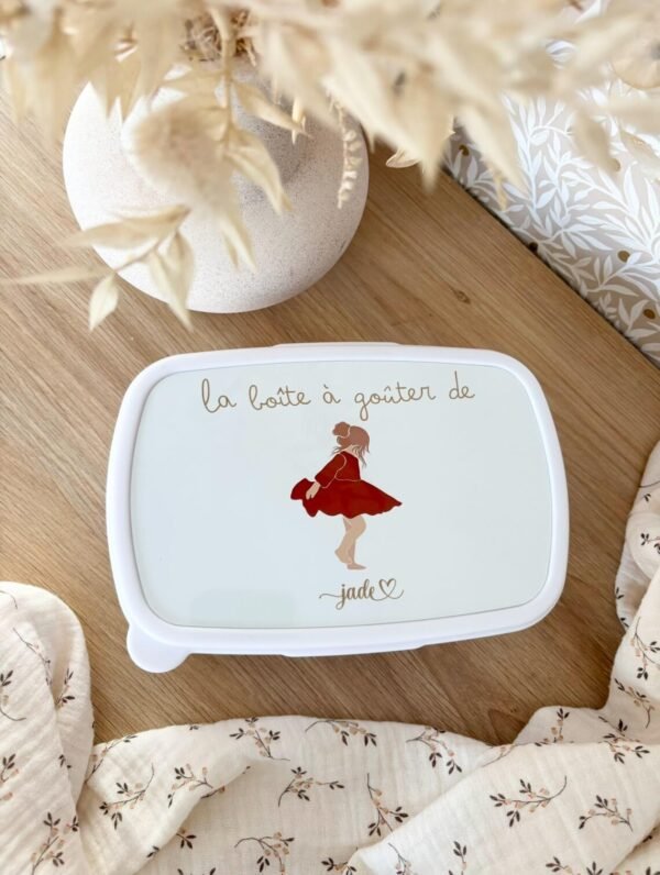 Cette boîte à goûter / lunch box personnalisable pour enfants est l’accessoire indispensable pour accompagner vos petits au quotidien ! Idéale pour l’école, les sorties scolaires, ou les activités extra-scolaires, cette boîte à goûter est à la fois pratique et amusante, grâce à sa personnalisation.