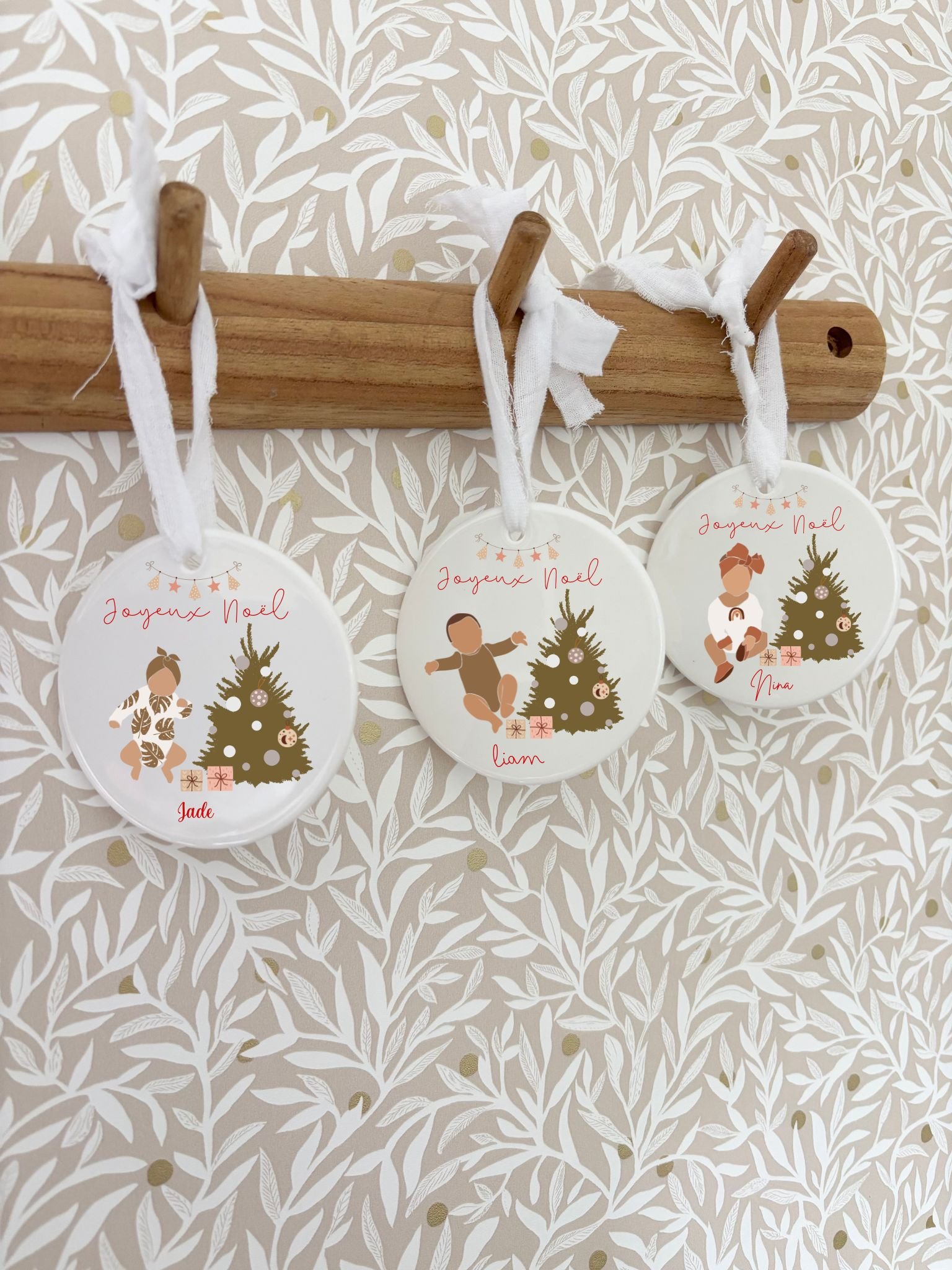 Boule de Noël en céramique personnalisée avec le prénom et l’illustration de votre choix. Idéale pour décorer votre sapin ou offrir un cadeau unique et attentionné. Chaque boule est imprimée avec soin pour garantir une finition brillante, durable et de qualité.