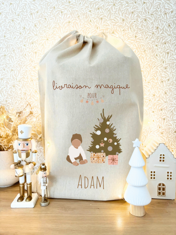 Créez la magie de Noël avec notre hotte de Noël personnalisable, parfaite pour ajouter une touche spéciale sous le sapin ! Conçue en tissu polyester au style lin, elle allie élégance et durabilité pour être réutilisée année après année.