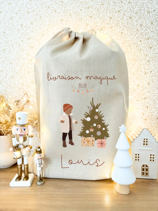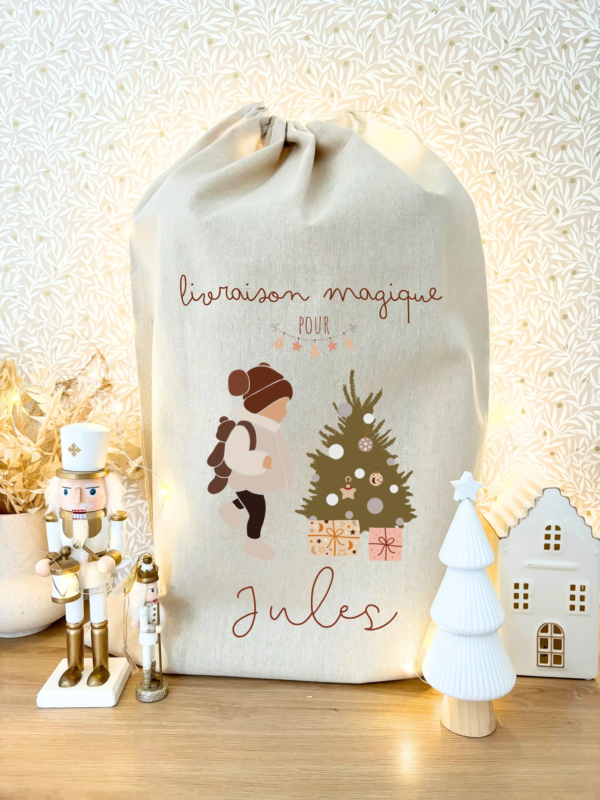 Créez la magie de Noël avec notre hotte de Noël personnalisable, parfaite pour ajouter une touche spéciale sous le sapin ! Conçue en tissu polyester au style lin, elle allie élégance et durabilité pour être réutilisée année après année.