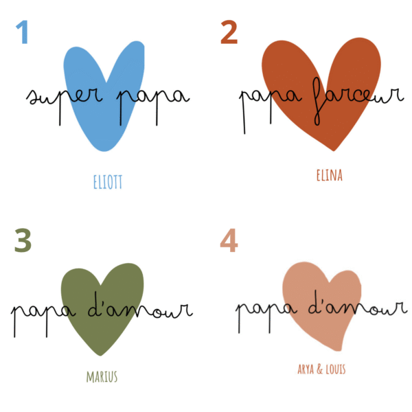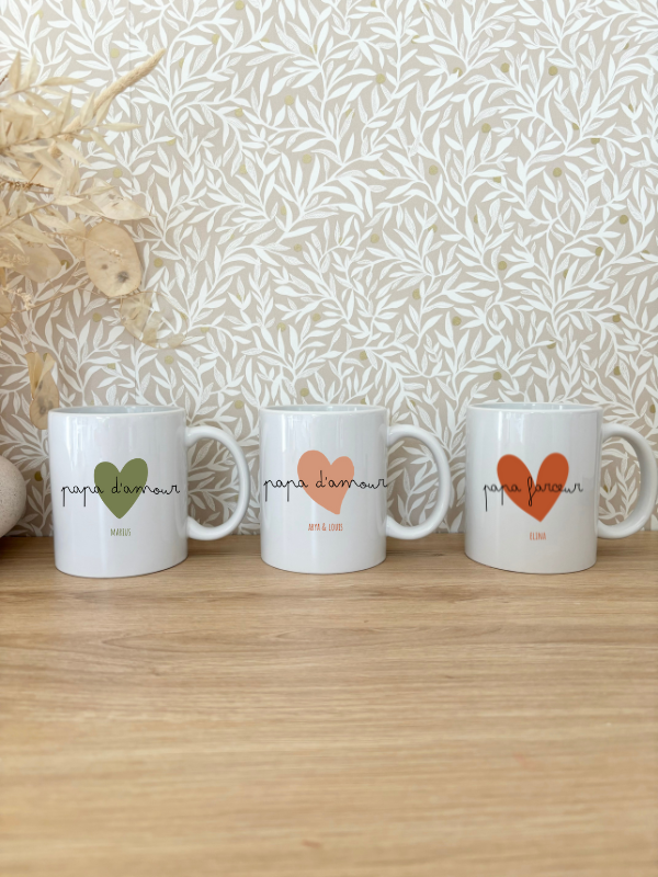 Offrez un cadeau unique et plein de tendresse à votre papa pour sa fête ! Notre mug personnalisable, avec son design élégant et la possibilité d’ajouter le prénom du ou des enfants, est le présent parfait pour montrer à votre papa combien il compte pour vous.