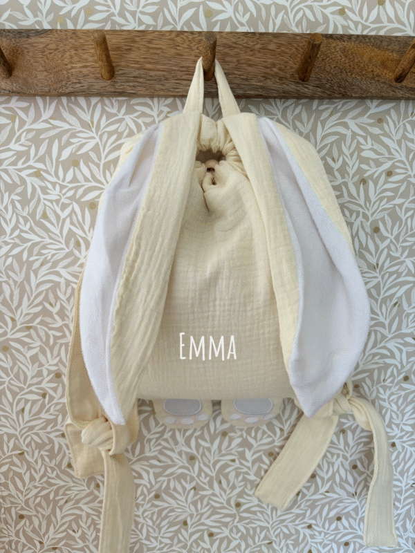 Mots-clés : sac enfant personnalisé, sac avec oreilles de lapin, sac en velours, sac en double gaze de coton, sac à dos enfant, sac pour école, crèche, sorties, cadeaux enfants, bretelles réglables, attache porte-manteau, prénom personnalisé.