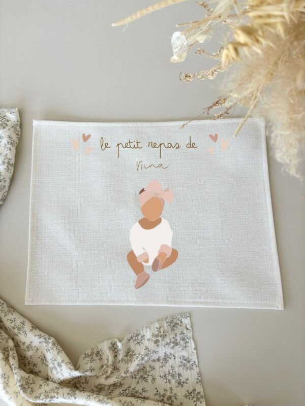 Mots-clés : set de table enfant, set de table personnalisable, apprentissage autonomie, mise en place de la table, cadeau enfant, prénom personnalisé, éducatif, matériel durable, repas enfant, facile à nettoyer.