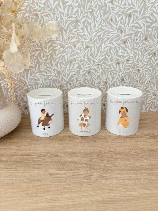 Aidez vos enfants à économiser avec style grâce à notre tirelire enfant personnalisée ! Fabriquée en céramique robuste, cette tirelire est non seulement un outil éducatif précieux mais aussi un bel objet décoratif pour la chambre de votre enfant. Avec des possibilités infinies de personnalisation, c’est un cadeau unique et mémorable pour toutes les occasions.